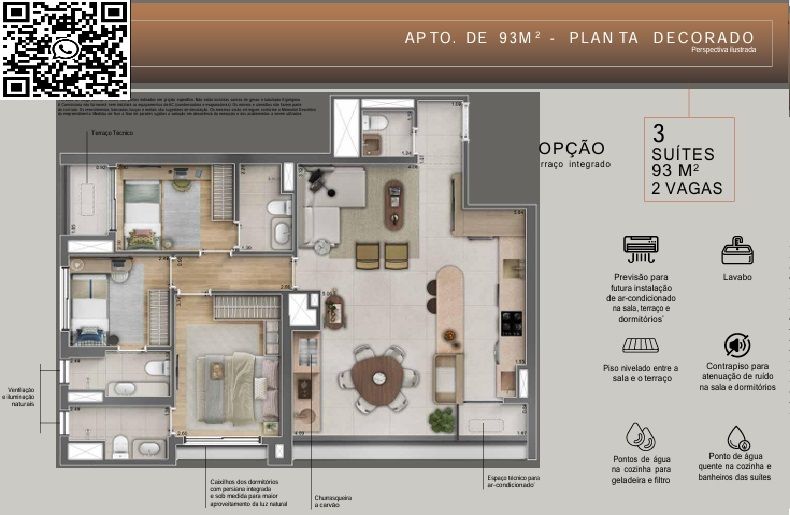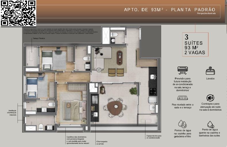 Em um terreno de esquina, se destaca com uma torre exclusivamente residencial, oferecendo apartamentos de 93m² com 3 suítes inteligentes, 1 vagas determinadas, e uma área de lazer cuidadosamente planejada para proporcionar o cenário perfeito para você e sua família.