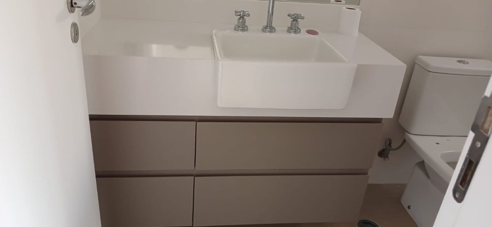 Já está com os armários embutidos, fechamento de varanda e área de serviço, box, piso porcelanato em todo apto, cook top e forno, aquecedor, bancada branca em todos os banheiros, espelho nos banheiros , rolos na copa/cozinha e cortina na sala.
