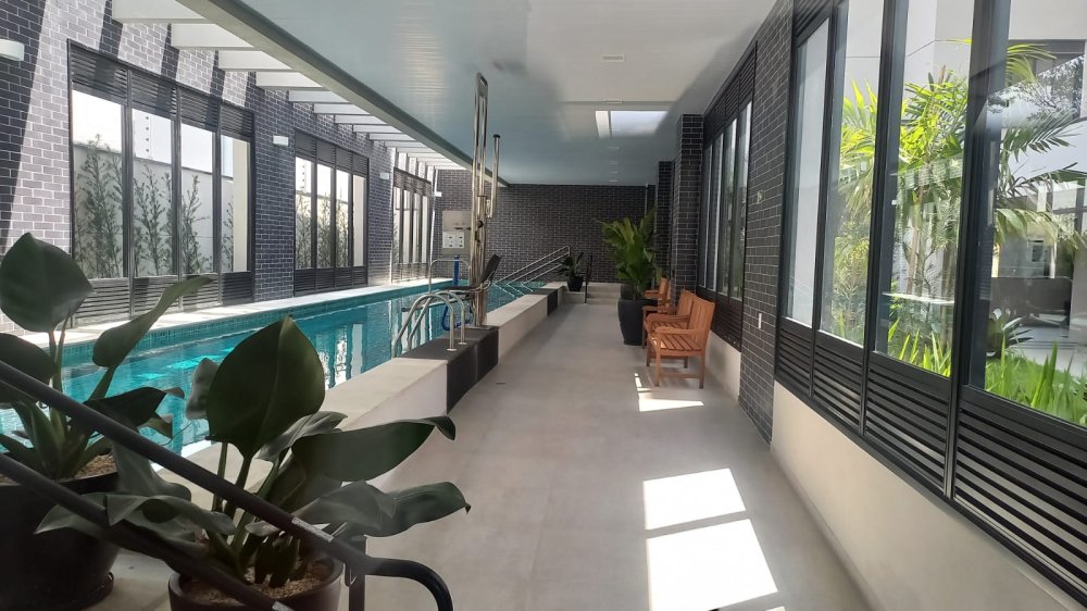 * Bem-estar e Saúde: Academia moderna, piscina coberta e descoberta, sauna e quadra poliesportiva para manter a forma e relaxar.