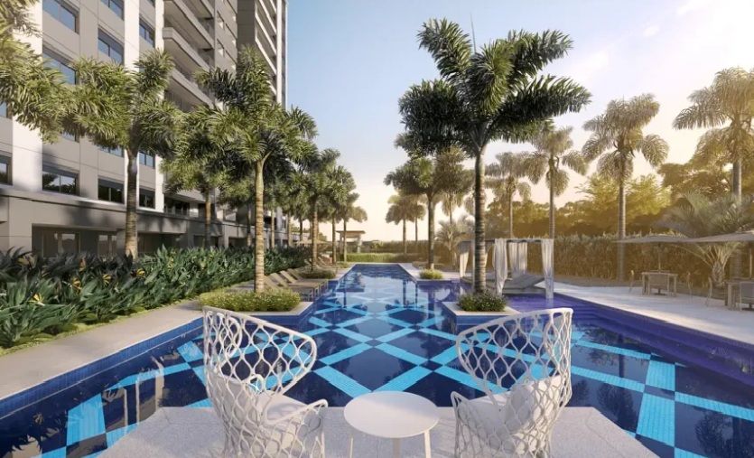 Possui academia, espaço gourmet, área verde de jardim, parquinho infantil, espaço para festas.