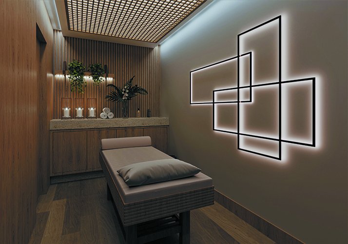 Sala de massagem com sauna úmida e ducha