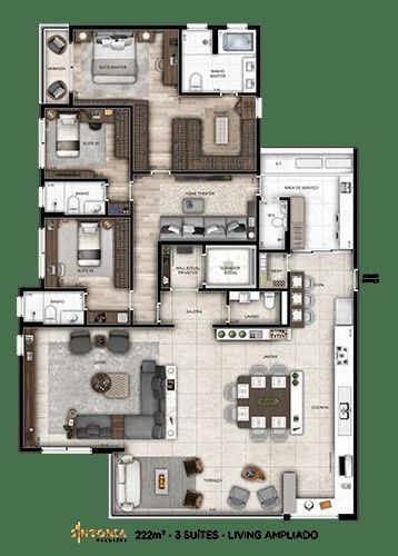 222 m² , 4 suítes, varanda gourmet, vagas determinadas e depósito privativo