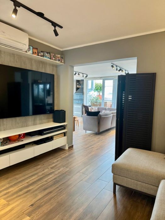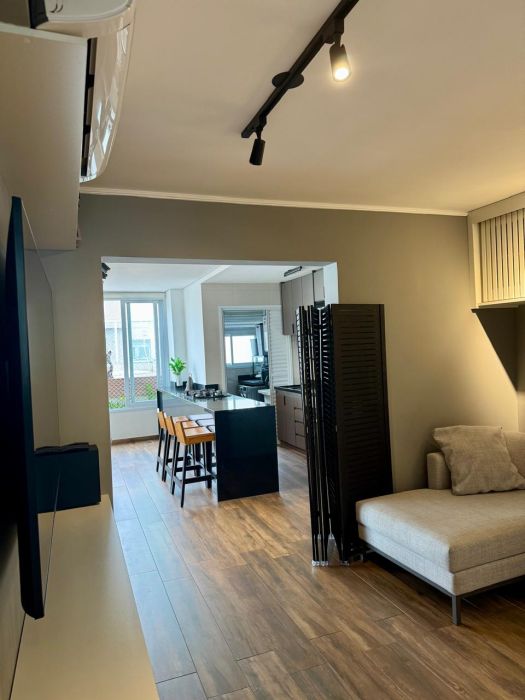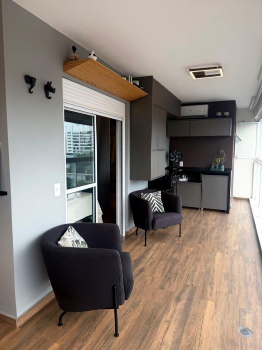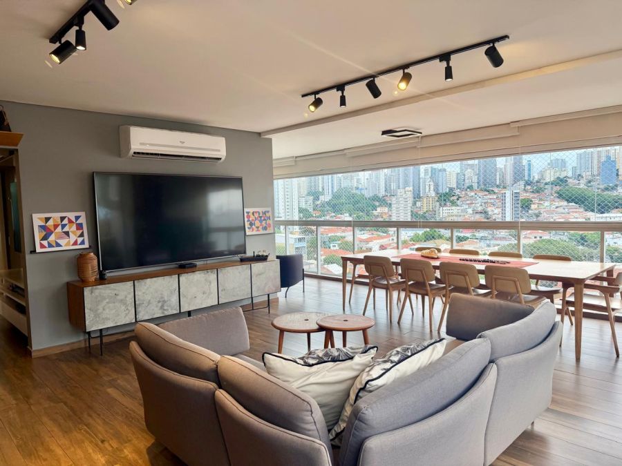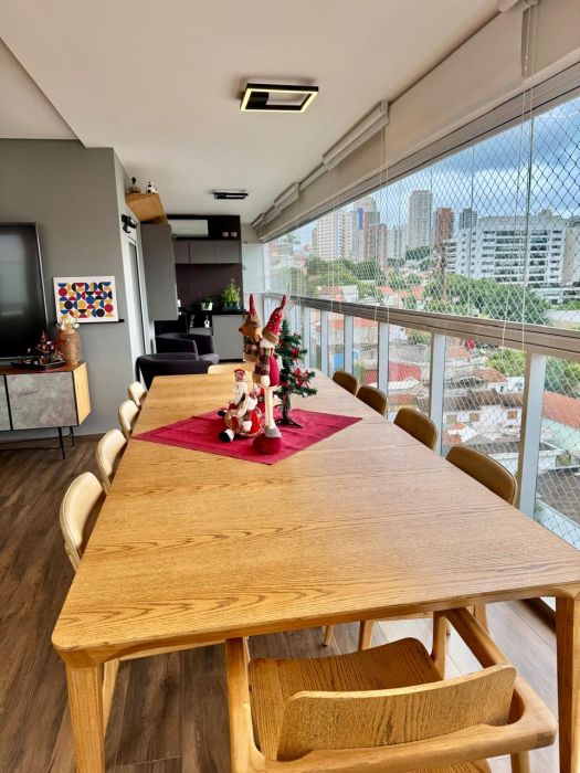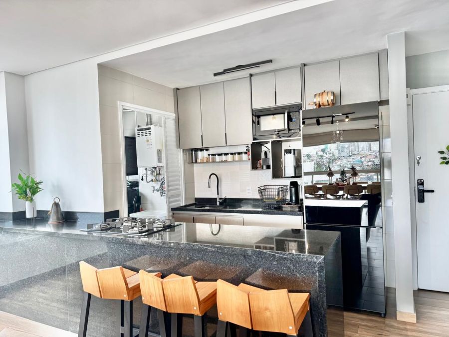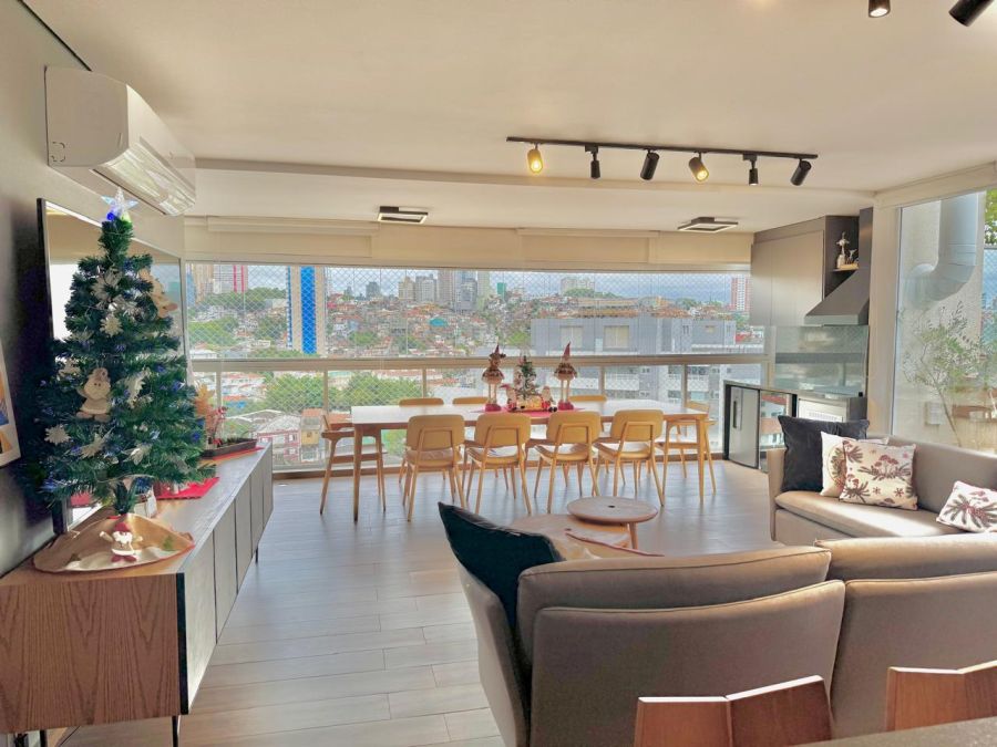 O imóvel, entregue no formato semimobiliado, apresenta uma planta racional e bem distribuída. São 3 dormitórios, sendo 1 suíte, complementados por 3 banheiros e um lavabo, garantindo privacidade e conforto. A área social é composta por uma sala ampla que se integra à varanda, proporcionando uma vista panorâmica privilegiada da região. O imóvel conta ainda com área de serviço independente, incluindo banheiro de serviço, e dispõe de 2 vagas de garagem fixas.