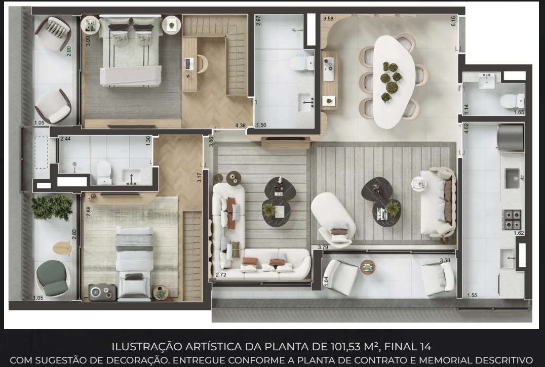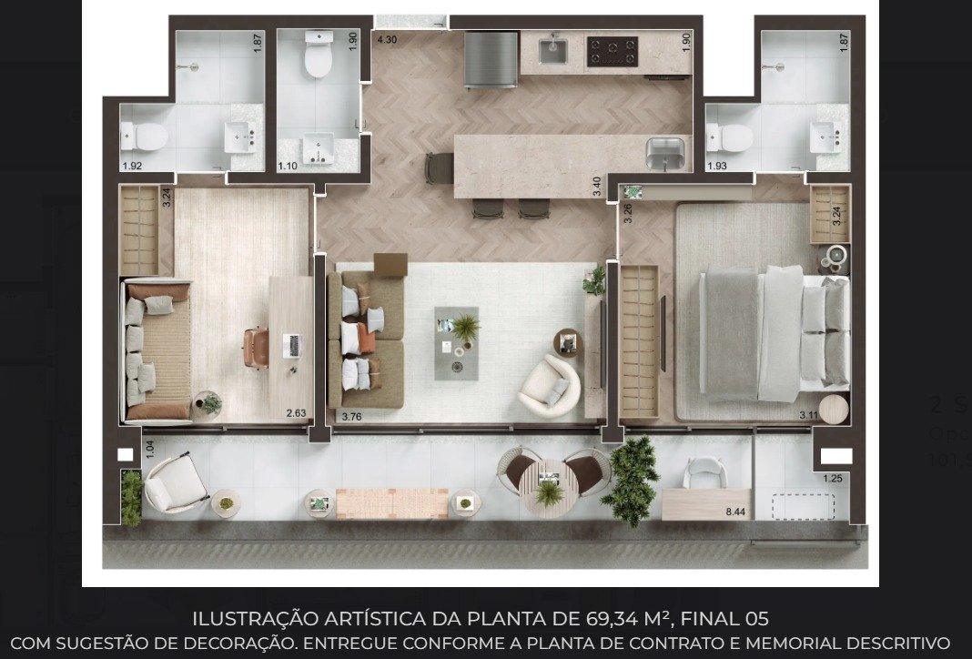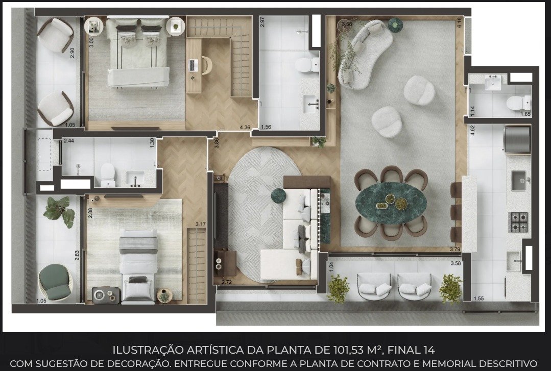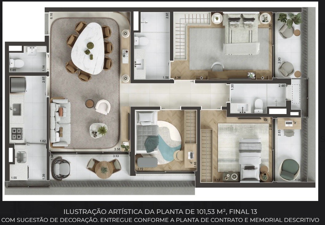 Imagine-se em plantas inteligentes e bem distribuídas. Apartamentos de 3 dormitórios, sendo 1 suíte, com 2 vagas de garagem. Ou opções de 1 e 2 suítes com lavabo e 1 vaga. E o melhor: todas as vagas são determinadas.